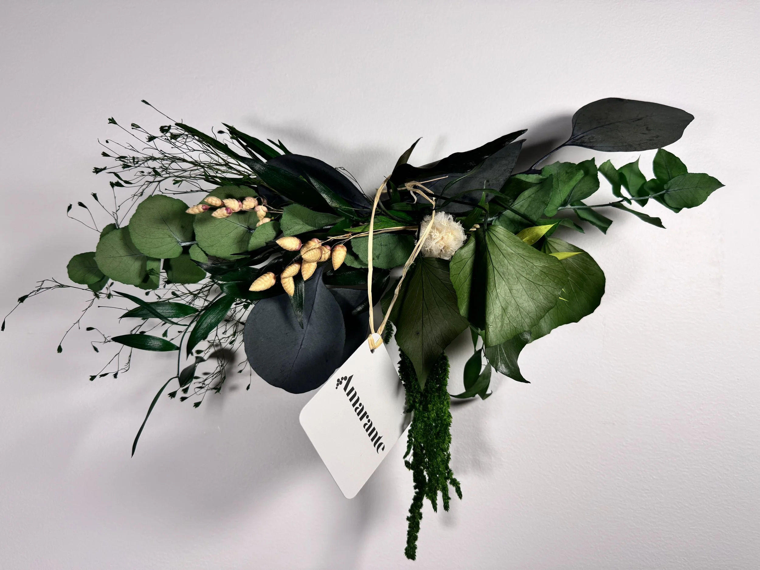 Chez Amarante, chaque création est réalisée à la main, dans une approche résolument artisanale. Nous travaillons les plantes stabilisées comme une matière à part entière, en composant avec les volumes, les textures et les nuances pour donner naissance à des pièces uniques. Mur végétal, patch mural, bouquet ou installation sur mesure : chaque réalisation est pensée en lien avec son lieu, son usage et son atmosphère. Loin des compositions standardisées, nous privilégions le geste, l’équilibre et le détail pour créer des œuvres végétales durables, sans entretien, qui traversent le temps avec justesse et élégance.